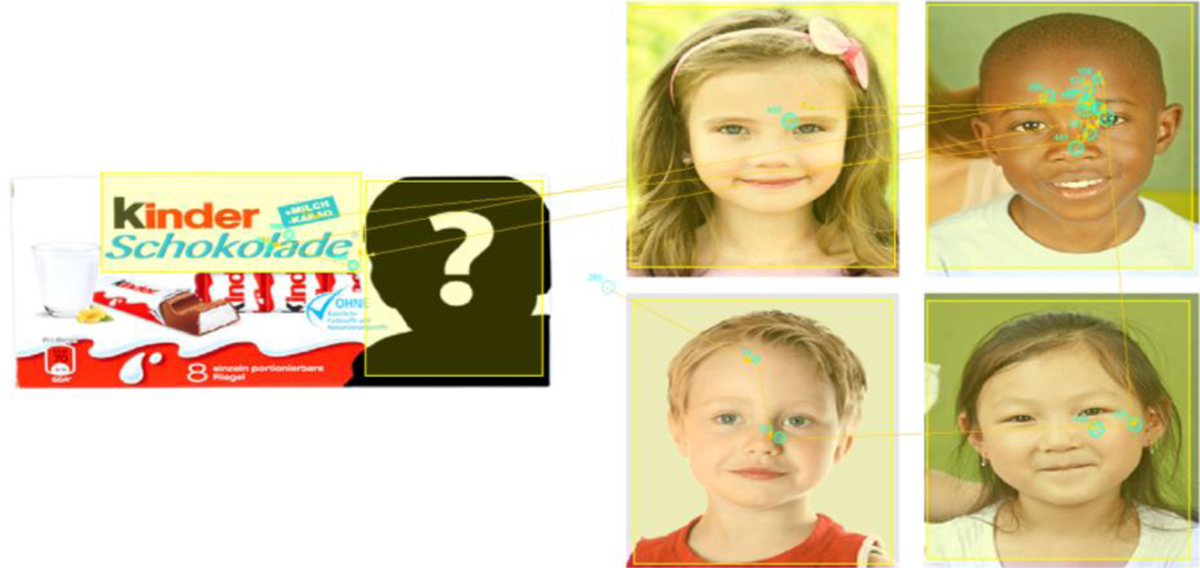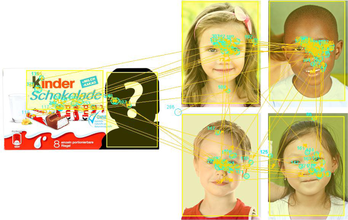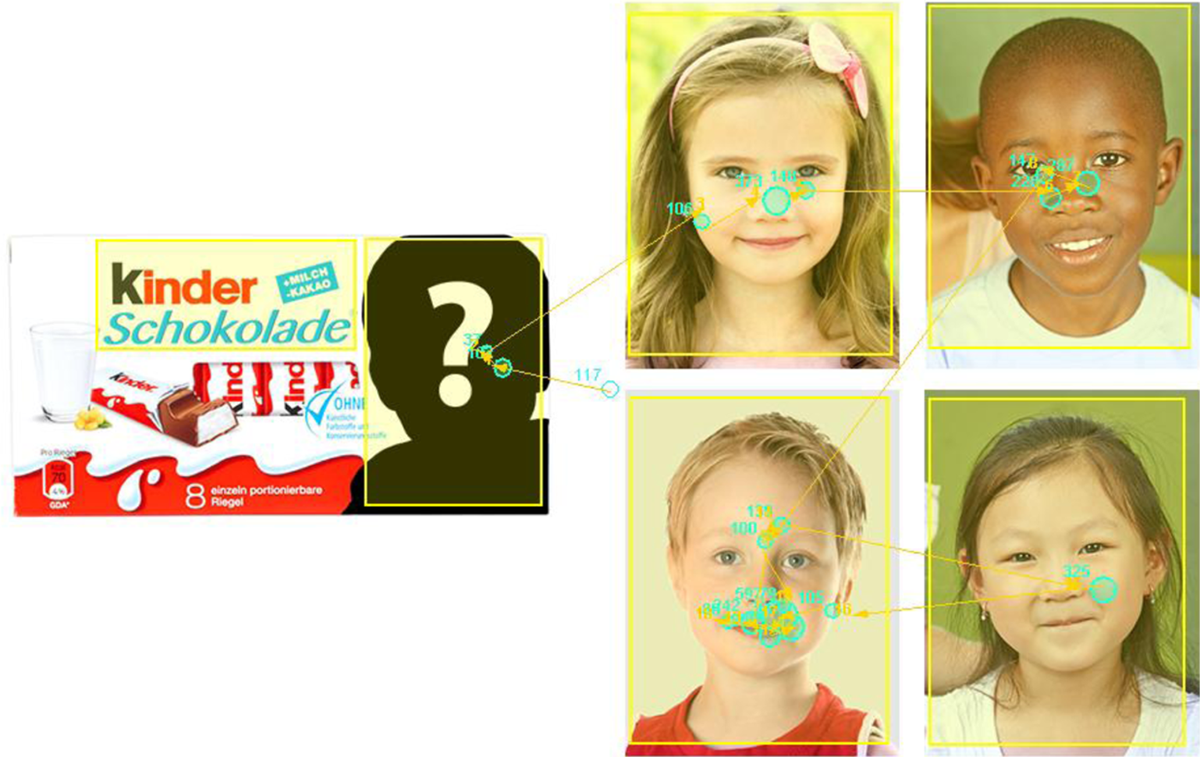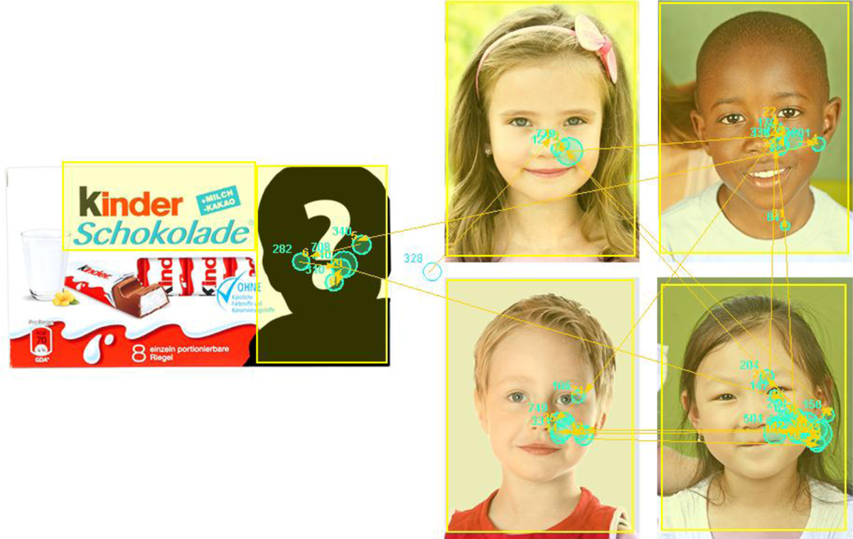 In order to visualise ‘novel ways of seeing’ informed by cultural expertise we provide selected visual data from the perceptual-cognitive pilot (for the entire experiment refer to Breninger, 2020). We present one stimulus from the qualitative pilot study here, to show how one can approach visual data and perceptual change experimentally. For this purpose the infamous Kinder chocolate package has been translated into a visual stimulus of our perceptuo-cognitive pilot. Due to the cultural relevance of this stimulus around the time of the experiment, we hoped to elicit culturalised, affective response styles. In general, Kinder chocolate has faced various challenges of how to ‘modernise and internationalise’ the image of the well-known ‘blonde boy’ on the packaging – dearly loved by generations of dedicated chocolate consumers in Germany and Austria. In 2012 (Ferrero Kinder), for example, the ‘New Face of Ferrero’ competition launched in the UK aimed at featuring different faces on the packaging and create public participation in the difficult face-selection process. This competition was heavily criticised on account of being discriminatory since only white, photogenic children had been chosen as winners and had found themselves depicted on the Kinder chocolate packaging. In 2016 (Ferrero Kinder Face) Kinder chocolate launched another controversial marketing campaign in Germany featuring pictures of children’s faces belonging to the national heroes of the German football team. The Ferrero marketing team was criticised for propagating more subtle forms of racism by sending the meta-message of only ‘tolerating culturally different Kinder faces’ on their packaging as long as they were successful in terms of being beneficial to the German nation.