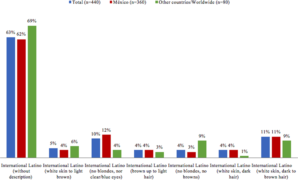 Usually for both national and international projects, there is no mention of the physical characteristics that ‘international Latino’ involves (Figure 2). However, in more than one-third of all the ‘profile breakdowns’ reviewed, descriptions appear of how ‘international Latino’ looks and doesn’t look like.